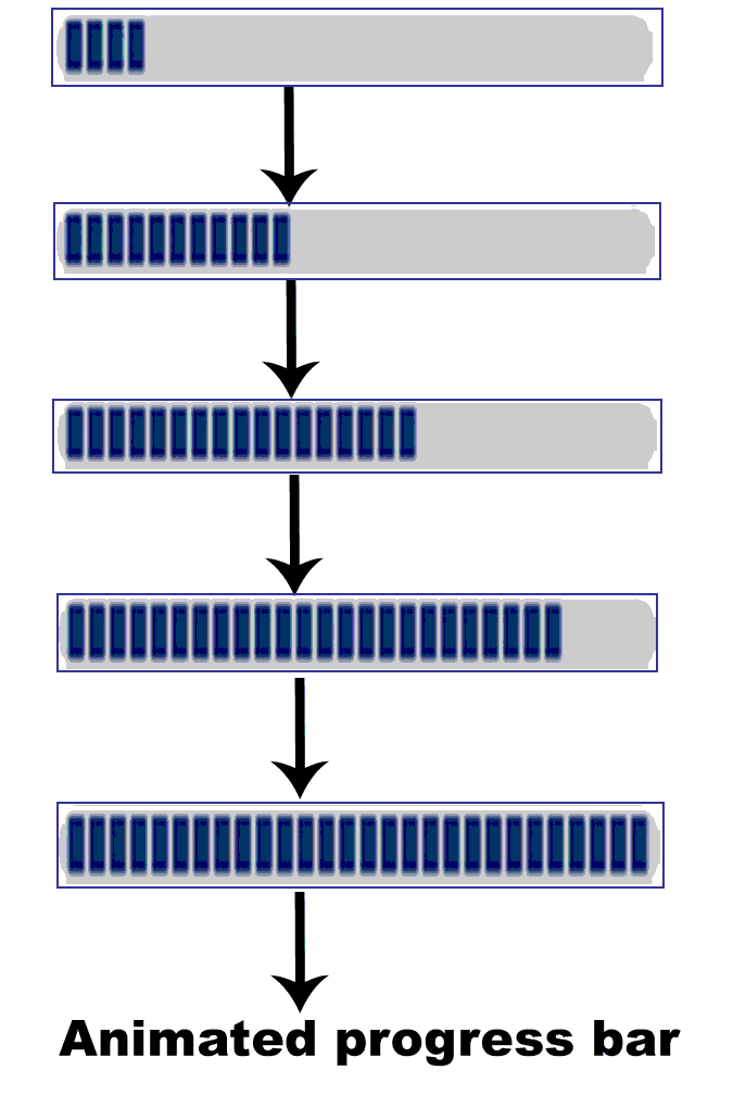 Creating a fake progress bar with JavaScript will be secondary method if you try this method once, because you need a fake one not a real.The way we are going to use now must be the easiest way. If you already know how to animate using Imageready then I am sure that you know how to do, if not then take a look at the image, here we shall call the blue boxes as