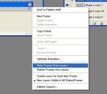 - Click on the small arrow button at the top right side of the Animation window and click on Make Frames From Layers option.
