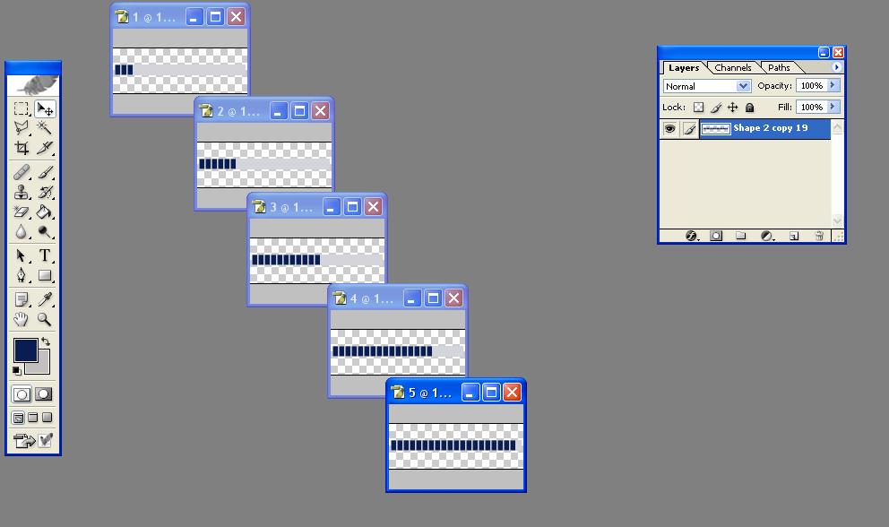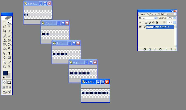 It will form an individual image with several layers. Here the layers are the images of the Progress bar we created by merging the small blue boxes in previous steps.